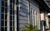 昭和12年(1937年)頃、郵便局として建てられた、木造二階建、板張りの壁のオシャレな建物です。